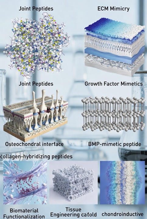 - Scaffold functionalization — Peptide‑based biomaterials have been reported to assist in cartilage and bone regeneration by virtue of peptides that regulate cell adhesion, differentiation, and matrix formation.